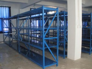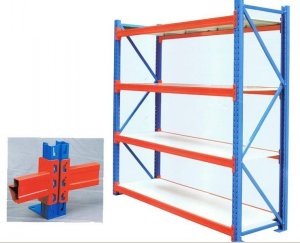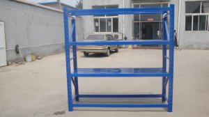 | 中型貨架結構 1、貨架立柱是由冷軋鋼板經專用冷彎成型機組滾軋成型,立柱正面沖雙排孔,孔距離以50mm距離沿直線排列,立柱孔用來掛接橫梁之用;兩根立柱相對,中間有橫向連接管與傾斜連接管將兩根立柱組裝成貨架 2、貨架橫梁采用“P”型管材,俗稱“階梯梁”,階梯的高度與層板的高度相匹配。 3、貨架鋼層板采有冷軋鋼板按所需尺寸四邊折彎成型。 4、橫梁與立柱片掛接組裝成框架,*后鋪設鋼層板,至此一組完整的中型貨架成型。 5、貨架各部件加工好成型之后全部經打磨、酸洗、磷化、全自動粉末靜電噴涂、烘干等工藝處理后組裝成品。生產出的貨架成品表面光潔、美觀;貨架層可上下依50mm節距任意調節,拆裝方便。