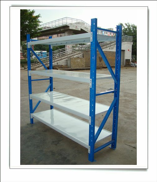 | 中型貨架結構 1、貨架立柱是由冷軋鋼板經專用冷彎成型機組滾軋成型,立柱正面沖雙排孔,孔距離以50mm距離沿直線排列,立柱孔用來掛接橫梁之用;兩根立柱相對,中間有橫向連接管與傾斜連接管將兩根立柱組裝成貨架 2、貨架橫梁采用“P”型管材,俗稱“階梯梁”,階梯的高度與層板的高度相匹配。 3、貨架鋼層板采有冷軋鋼板按所需尺寸四邊折彎成型。 4、橫梁與立柱片掛接組裝成框架,*后鋪設鋼層板,至此一組完整的中型貨架成型。 5、貨架各部件加工好成型之后全部經打磨、酸洗、磷化、全自動粉末靜電噴涂、烘干等工藝處理后組裝成品。生產出的貨架成品表面光潔、美觀;貨架層可上下依50mm節距任意調節,拆裝方便。